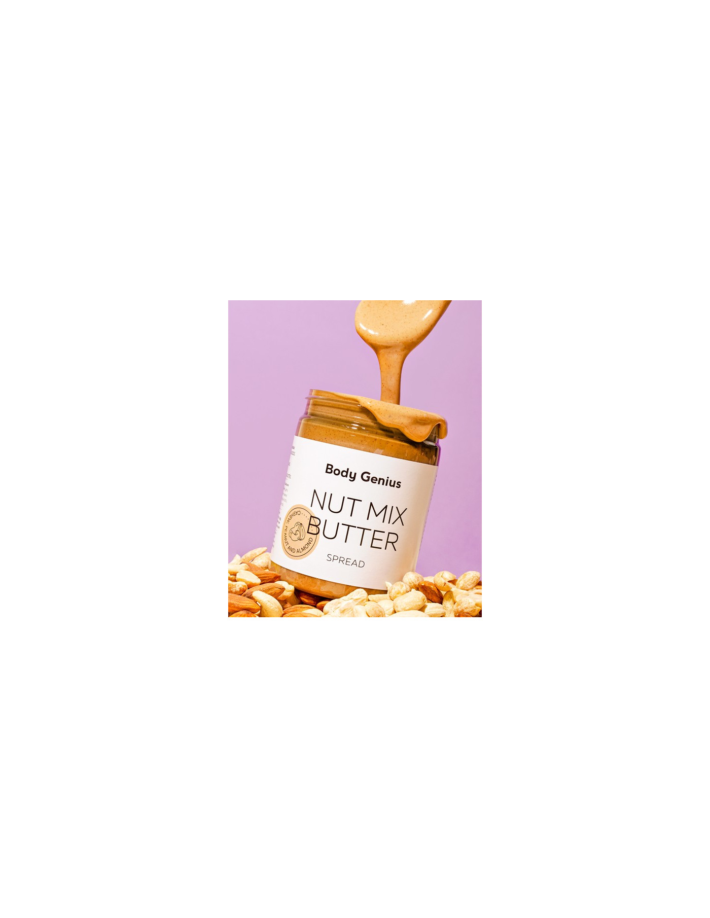 Nut Mix Butter tiene la inigualable textura extracremosa Body Genius, perfecta para utilizar como topping o como parte de recetas más elaboradas. Es suave, naturalmente dulce y le da el toque perfecto a los desayunos y meriendas más saludables. Nos encanta combinada con nuestros Protein Pancakes o en un desayuno con Protein Porridge, ¡es un perfect match!